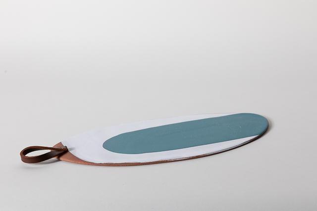 Both versatile and decorative, with the added British leather strap handle and brass rivets, a perfect sharing platter for the the table or a unique object for the wall.